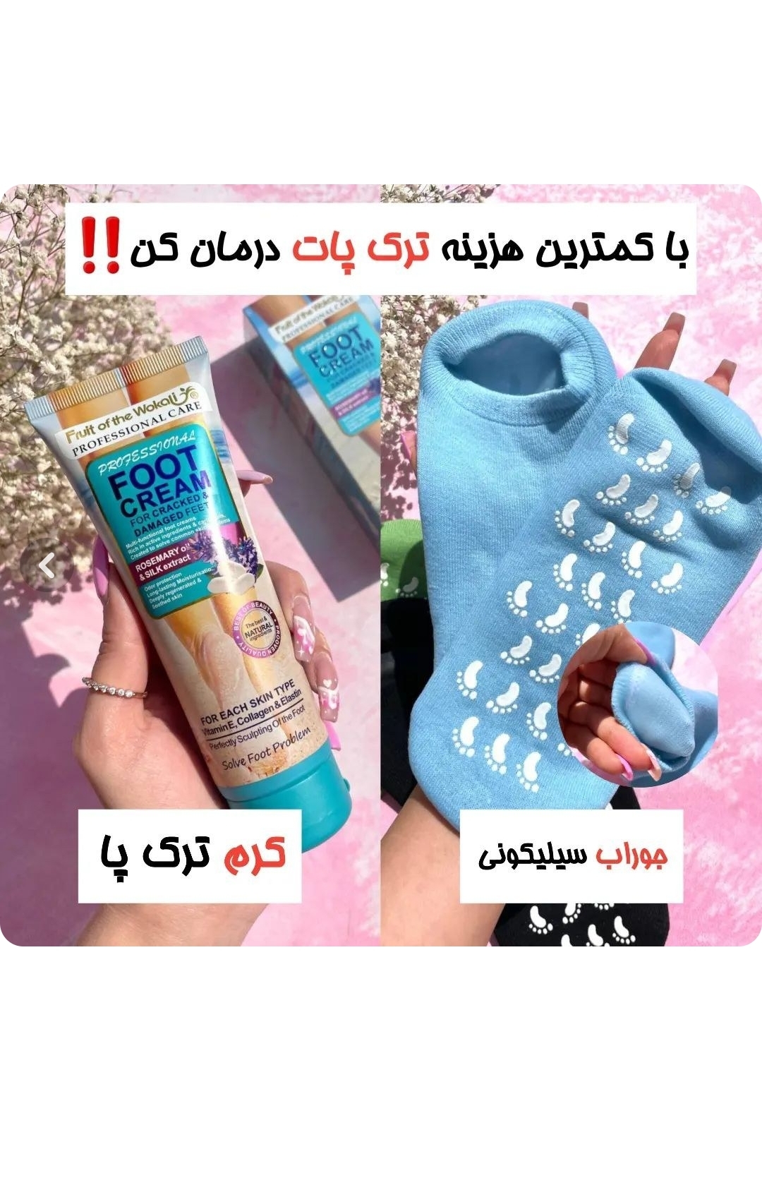 پک اقتصادی جوراب سیلیکونی اورجینال و کرم ترک پا بزرگ ۱۳۰میل برند وکا.لی برای درمان خشکی و ترک پا - پک اقتصادی ترک پا